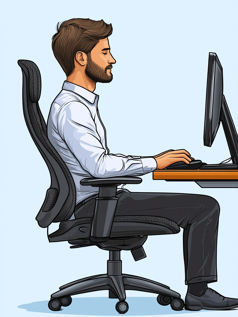 의자와 책상 높이를 조정하고, 모니터 위치를 확인하세요. 인체공학적 환경이 통증 예방의 첫걸음입니다.
